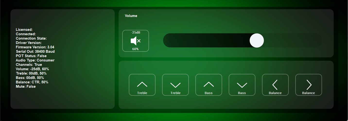 This driver offers 2-way communication with the FSR IT-VCM. Version 1.0 supports all documented commands. This driver comes with a 90-minute free trial. A license key can be purchased for $15 to unlock unlimited use on a per-processor basis. You will need to provide the MAC Address of your RTI XP Processor to receive a license key.